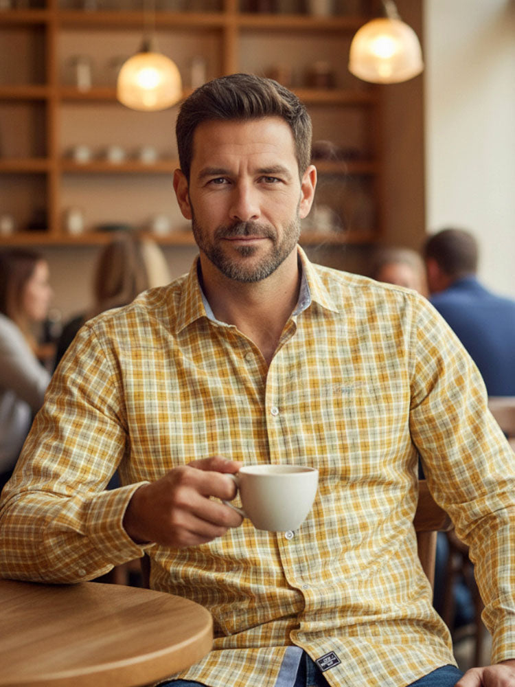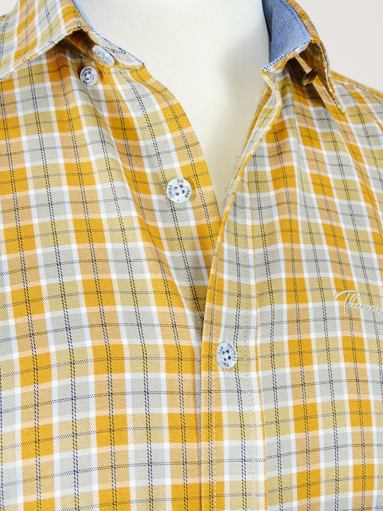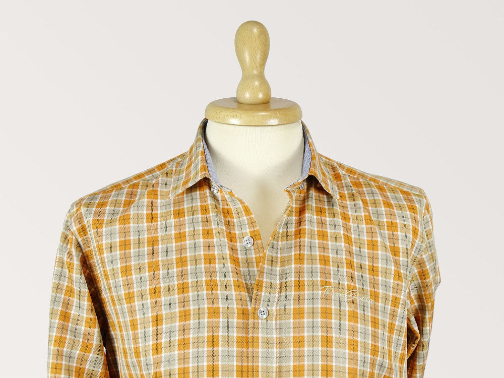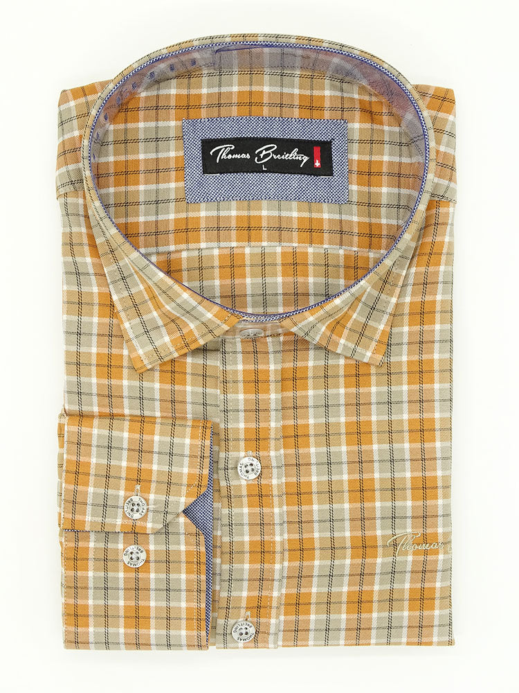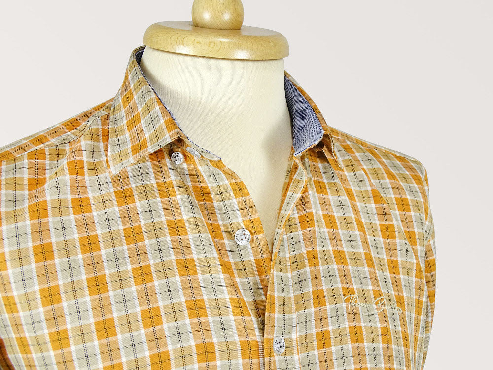 Egyedi kockás hosszú ujjú egyenes szabású férfi pamut ing, kényelmes ujjakkal és belül eltérő színű passzéval. Rejtettgombos gallérral, amely biztosítja a gallér megfelelő stabilitását. Hímzett márkajelzéssel a mellkas bal oldalán. Minőségi tartós festett kevertszálas anyagból készült. Kellemes tapintású, amely kényelmes érzést garantál viselés közben. Egyedülálló kivitel, amely mindig népszerű részét képezi majd elegáns és lezser stílusú megjelenésének. Nagyszerű viselet farmer nadrággal és chino nadrággal kombinálva egyaránt.