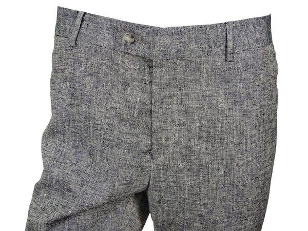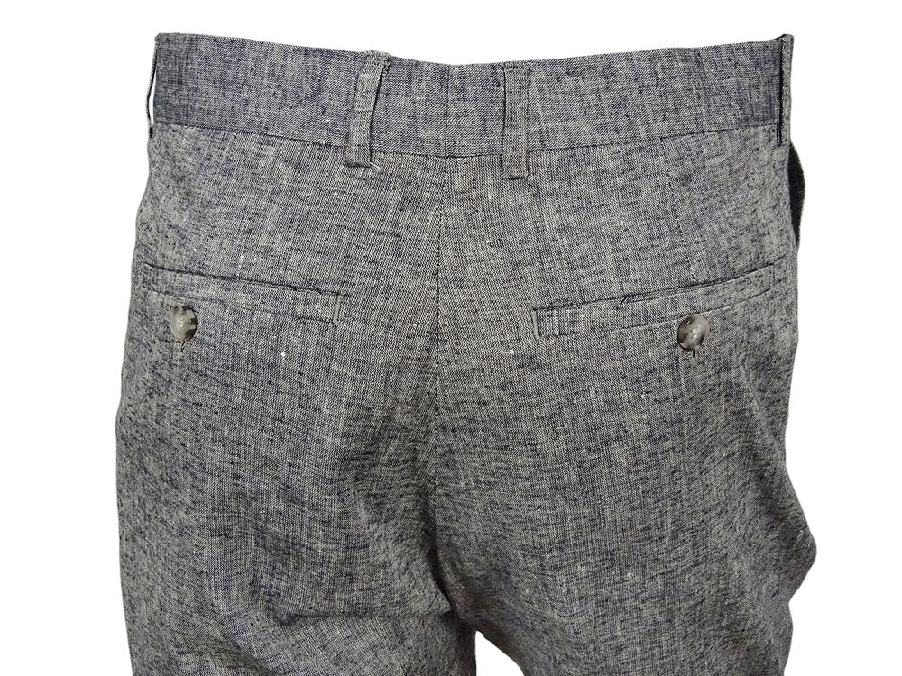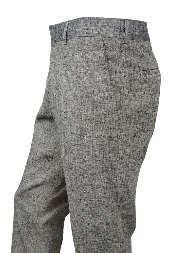 Elegáns melange mintás férfi len-pamut nadrág, kiváló minőségű anyagból. Laza esésű kiváló minőségű nadrág első-hátsó zsebekkel. Egyedi darab, mely divatos és laza-elegáns megjelenést kölcsönöz viselőjének. Előnyös a hozzá választható zakóhoz, melynek választásával tökéletesen kiegészítheti bármelyik laza-elegáns öltözékét. Egy férfi ruhatárából sem hiányozhat.