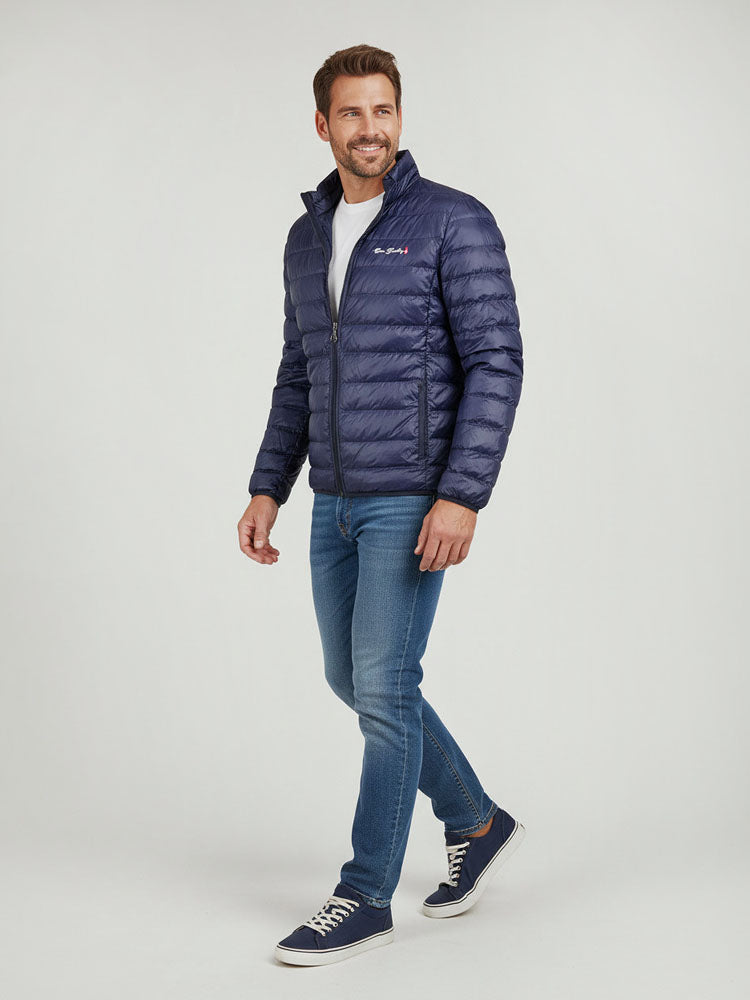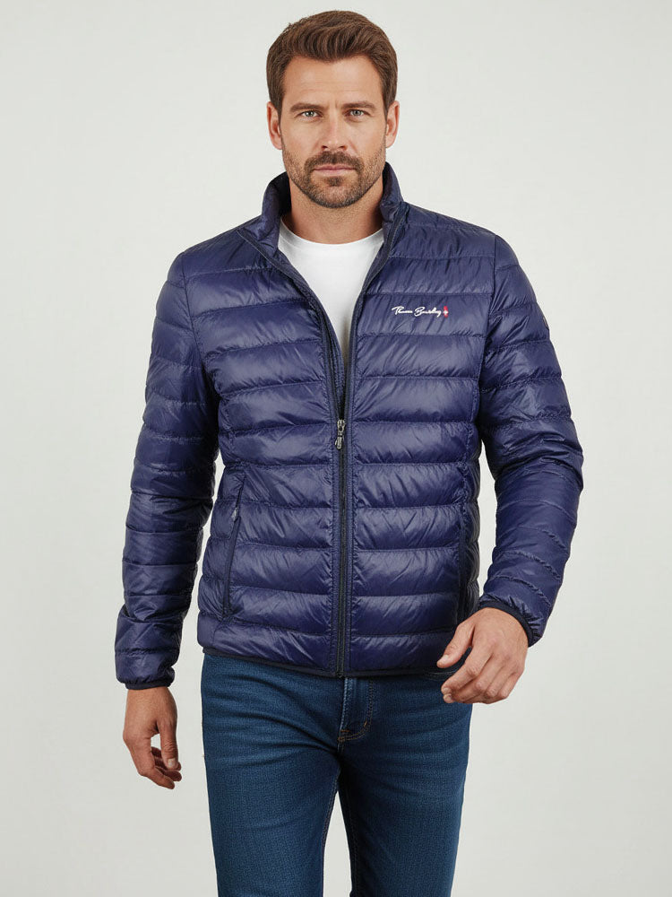 Steppelt, könnyű őszi férfi dzseki. Egyenes szabású derékkal, végig cipzáras kivitel, oldalsó zsebekkel. A vékony és könnyű kacsatollal bélelt anyag jól véd a szél ellen. Laza darab átmeneti öltözékhez, amelynek tulajdonságait enyhén szeles időben fogja értékelni.