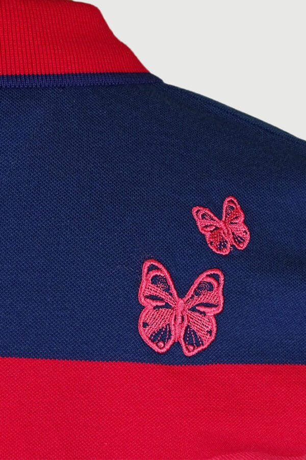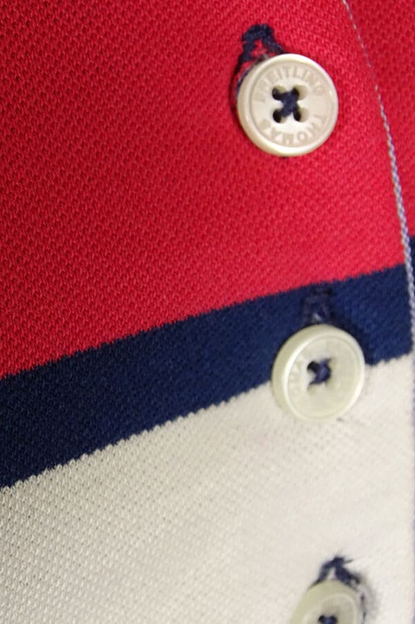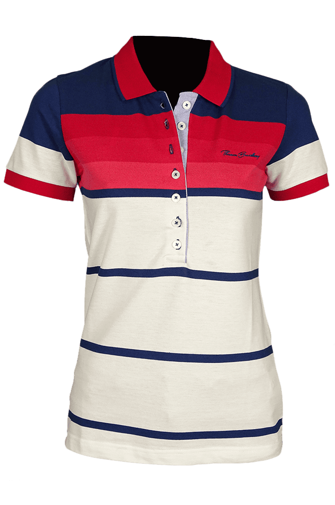 Thomas Breitling csíkos rövid ujjú galléros női póló hímzett márkajelzéssel.