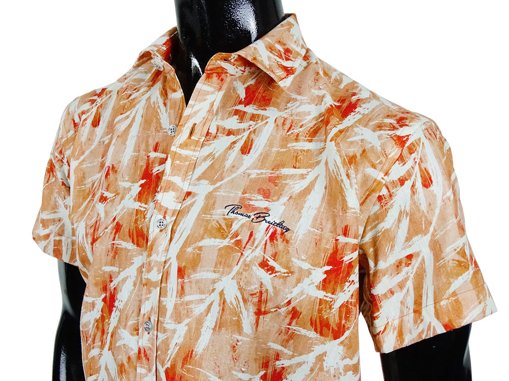 Levélmintás, egyenes szabású férfi kevertszálas-pamut ing, rövid ujjakkal, normál gallérral. Hímzett márkajelzéssel a mellkas bal oldalán. A puha, tartós, kevertszálas pamutból készült és nagyon kellemes tapintású, rendkívül kényelmes érzést garantál viselés közben. Egyedi mintájával, népszerű részét képezi majd elegáns és lezser ruhatárának. Remek viselet farmer nadrággal és chino nadrággal kombinálva egyaránt.