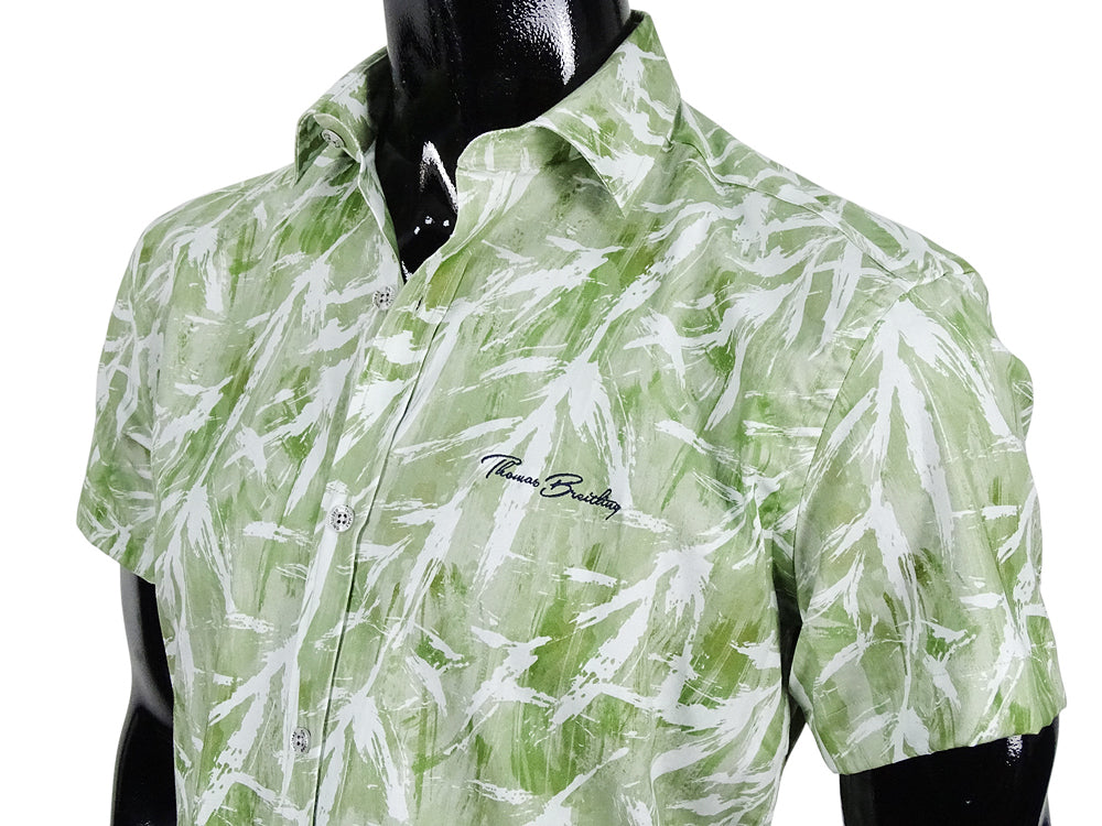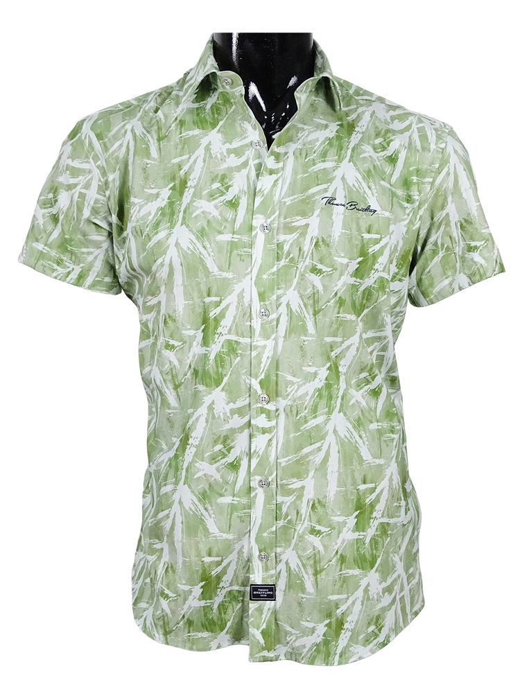 Levélmintás, egyenes szabású férfi kevertszálas-pamut ing, rövid ujjakkal, normál gallérral. Hímzett márkajelzéssel a mellkas bal oldalán. A puha, tartós, kevertszálas pamutból készült és nagyon kellemes tapintású, rendkívül kényelmes érzést garantál viselés közben. Egyedi mintájával, népszerű részét képezi majd elegáns és lezser ruhatárának. Remek viselet farmer nadrággal és chino nadrággal kombinálva egyaránt.