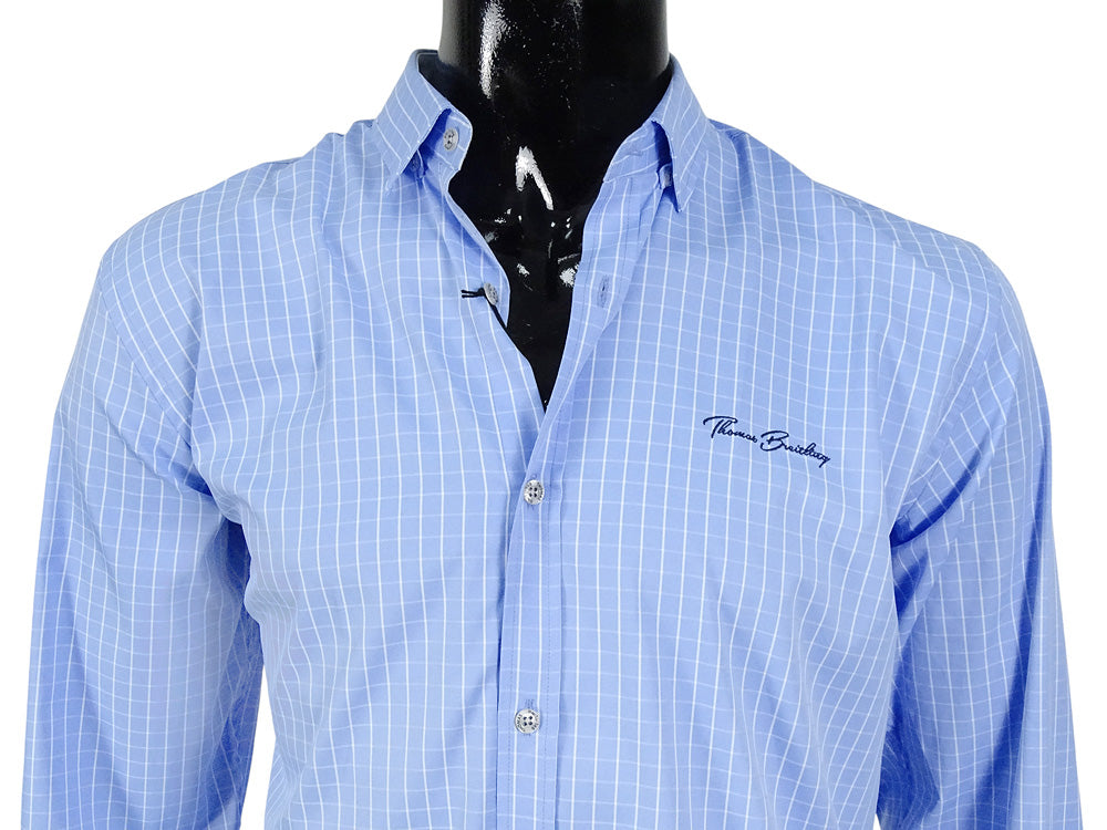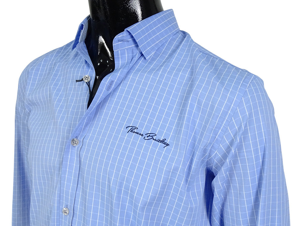 Kockás egyenes szabású férfi ing, normál hosszúságú ujjakkal, belül világoskék passzéval. A mellkas bal oldalán hímzett, valamint az alsó gomb alatt felvarrt Thomas Breitling logóval. Az ing legombolható rejettgombos gallérral készült, ezzel is biztosítva a gallér stabil tartását. A selymes hatású kellemesen puha pamut anyag garantálja a tökéletes légáteresztő képességet és a rendkívül kényelmes viseletet. A kockás minta remekül mutat egy farmer nadrággal kombinált laza öltözetben.