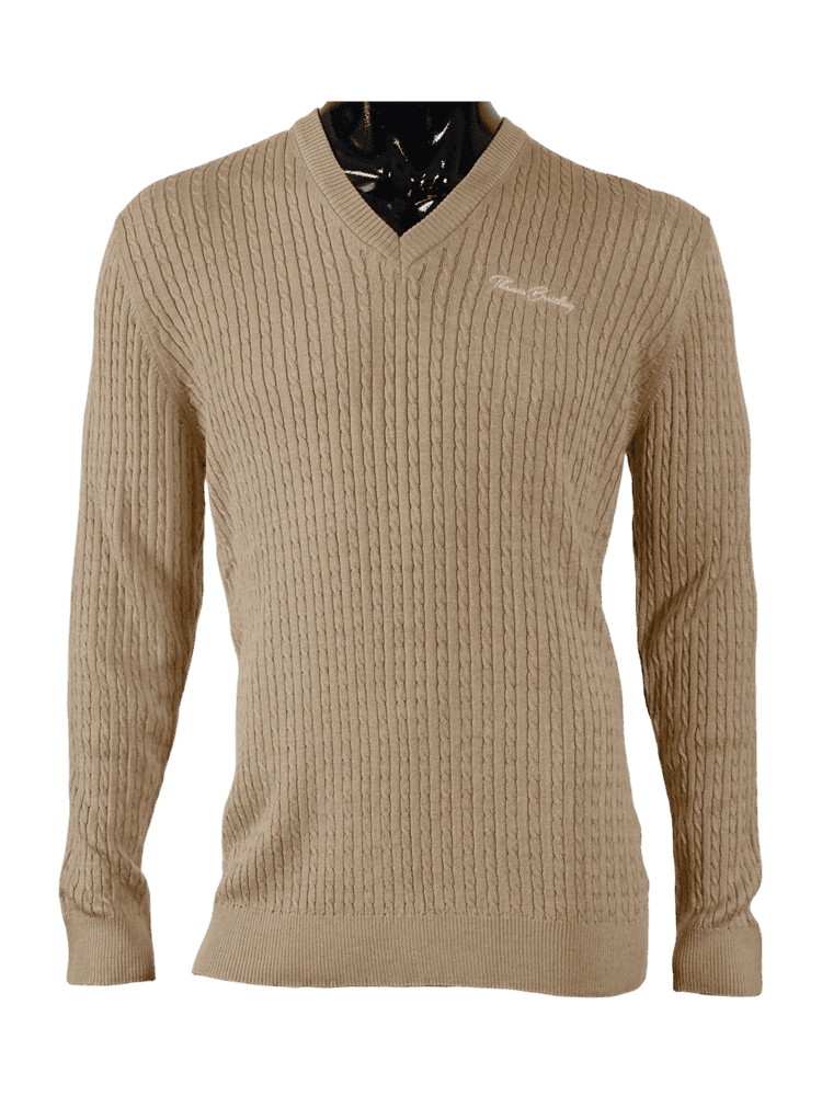 Anyagában csavartmintás kötéssel készült hosszúujjú v-nyakú vékony pulcsi férfiaknak, bordázott szegéllyel a nyakon és a derék részen. Hímzett Thomas Breitling márkajelzéssel a bal mellrészen. A bársonyosan puha, tartós, légáteresztő anyag kiváló minőségű szálakból készült és nagyon kellemes tapintású, rendkívül kényelmes érzést garantál viselés közben. Exkluzív divatcikk, amely laza-elegáns megjelenést kölcsönöz viselőjének. Egyszerű és szép darab, mely jól beleillik majd a ruhatárába.
