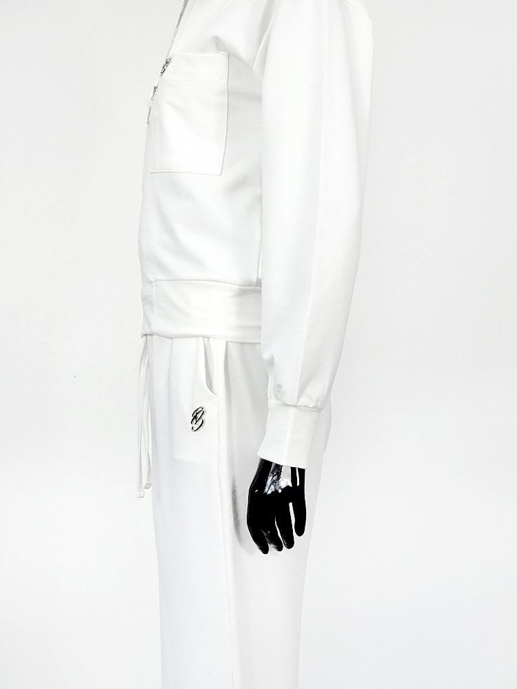 Trendi és laza női melegítő felső pamut-elasztán anyagból. A végig cipzáras felső megkönnyíti a fel- és levételt vagy akár a lezserebb viseletet. Az ujjak végén és a derékon bordázott enyhén rugalmas passzéval. A mellkason található nyitott zsebek 3D márkajelzéssel vannak díszítve. A nadrág két függőleges oldalzsebbel, gumis derék résszel, összehúzó zsinórral és szűkített lábszárral rendelkezik. A kiváló minőségű anyagösszetétel garantálja a kellemes puhaságot, légáteresztő képességet, formastabilitást és mindenekelőtt a rendkívül kényelmes viselet érzését. Stílusos darab, amely mindennapos viselésre alkalmas. Kiváló választás azoknak is akik a minimalista vagy homogén színeket kedvelik.