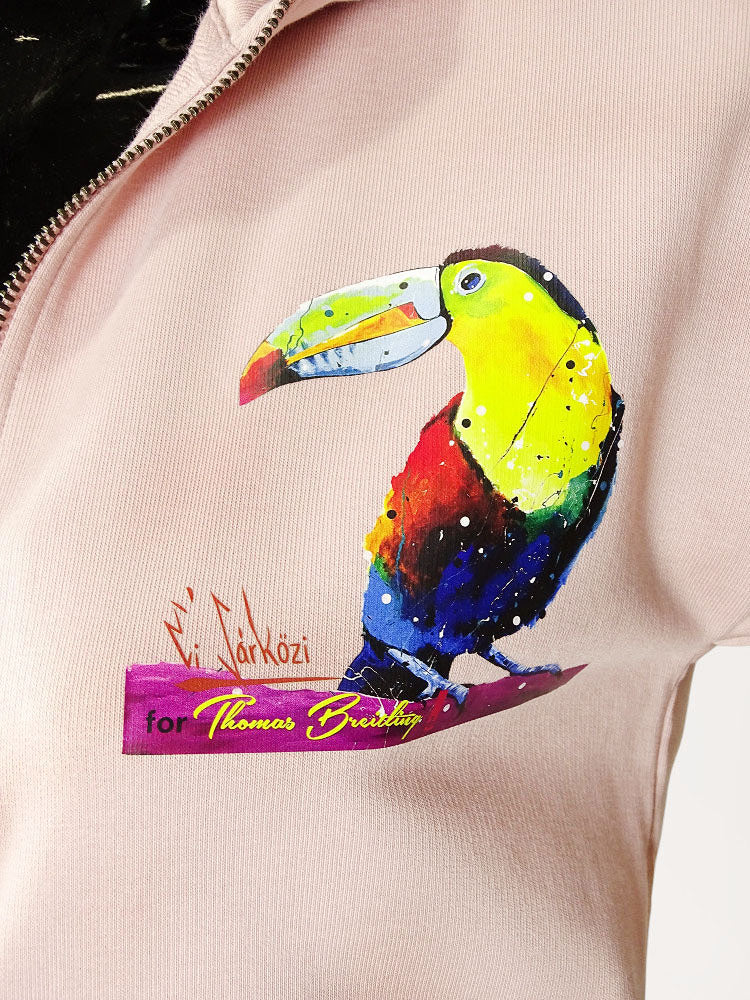 Egyszínű kapucnis hosszú ujjú női pulcsi. Elől táska zsebes kivitel, a mellkasra printelt Évi Sárkozi for Thomas Breitling design logóval. A prémium anyagösszetétel kiváló minőségű kevertszálas anyagból, mely finoman porózus textúrájának köszönhetően az egyedi légáteresztő képességet garantálja. Rendkívül kényelmes, mindennapi viseletre kiválóan alkalmas, sokoldalúan kombinálható alapja a laza stílusnak.