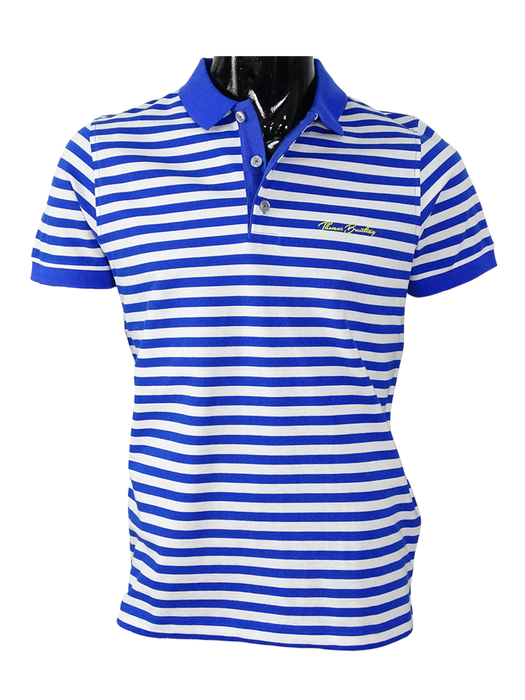 Tengerész csíkos rövidujjú galléros férfi piké póló, kellemesen puha kiváló minőségű pamutból. 3 gombos kivitel. A mellkasra hímzett Thomas Breitling márkajelzéssel. A prémium anyagösszetétel kiváló minőségű pamutszálakból áll, mely finoman porózus textúrájának köszönhetően az egyedi légáteresztő képességet garantálja. Rendkívül kényelmes, mindennapi viseletre kiválóan alkalmas, sokoldalúan kombinálható alapja a laza-elegáns stílusnak.