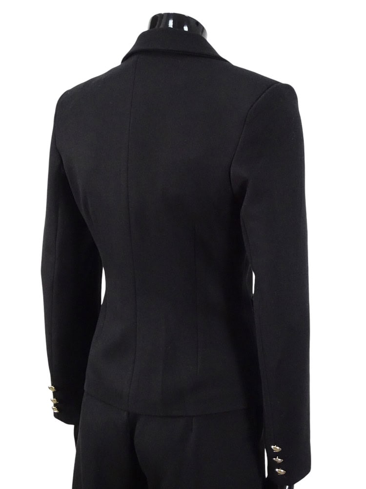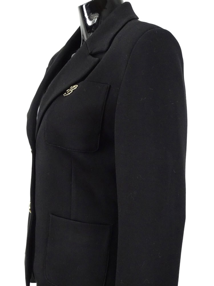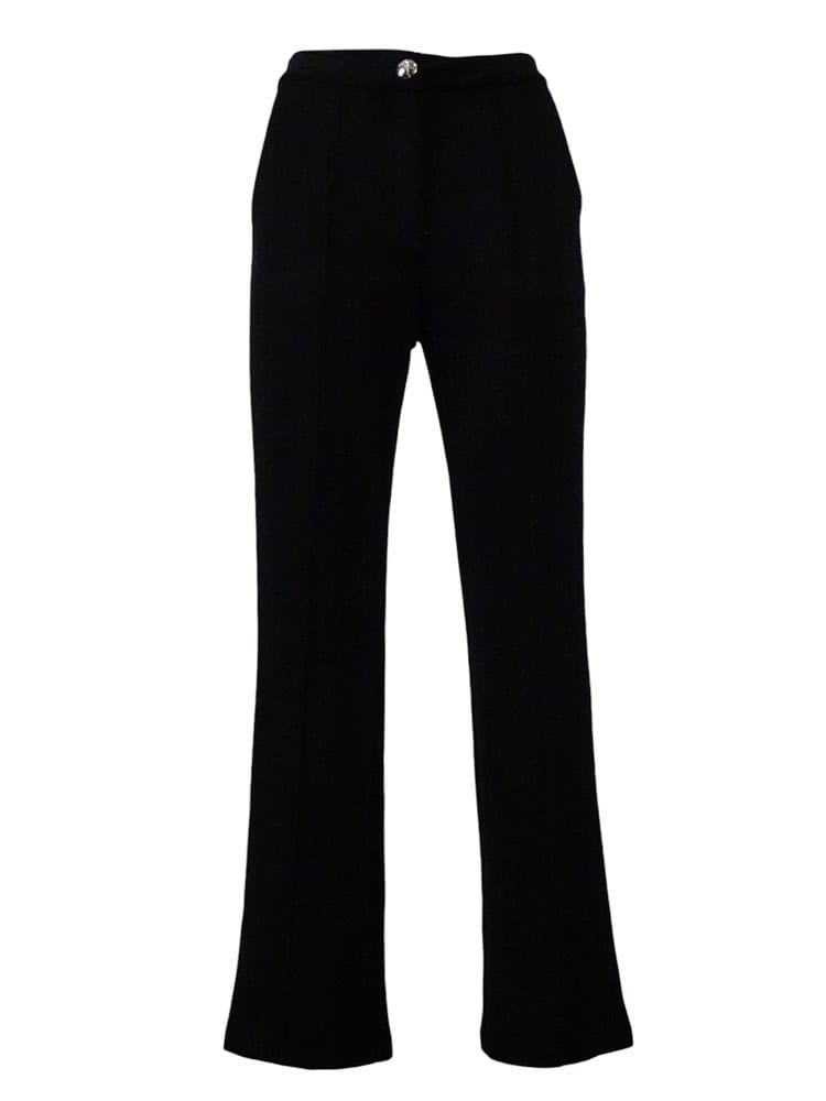 Elegant women's blazer and trousers set. The trousers have a normal waist height, wide-leg cut with hidden pockets, and a zip and button fastening at the waist. The top is a two-button, long-sleeved blazer with front pockets, featuring a 3D brand logo on the front pocket. The fabric is made of high-quality cotton, making it lightweight and perfectly breathable. A truly light and airy summer piece, fashionable and casual with its unique pattern. The front pockets on the trousers provide ample storage. An exclusive fashion item that gives the wearer a unique, extremely relaxed and elegant look.