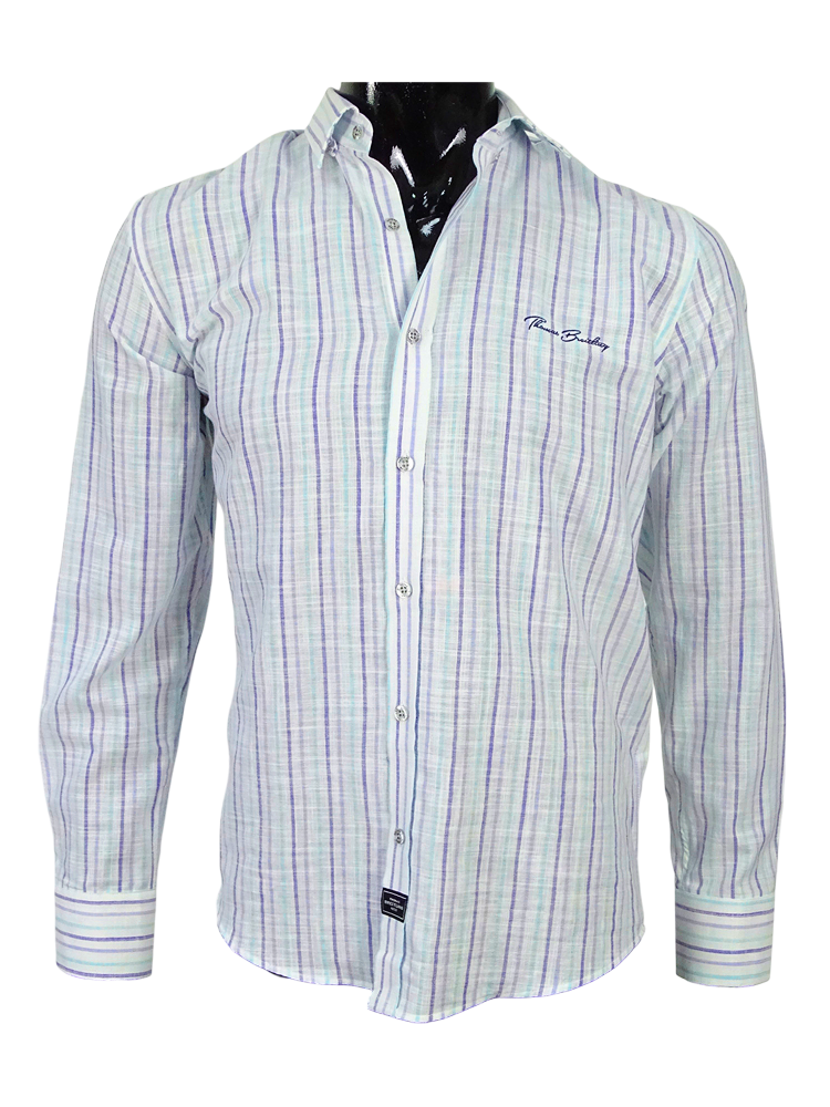 Egyedi csíkos mintás férfi len-pamut ing, belül azonos színű passzéval. Erős gallérral, amely biztosítja a gallér stabilitását. Hímzett márkajelzéssel a mellkas bal oldalán. A bársonyosan puha, tartós anyag kiváló minőségű len és pamutszálból készült, amely nagyon kellemes tapintású, rendkívül kényelmes érzést garantál viselés közben. Időtálló, szellős darab, amely mindig népszerű részét képezi majd elegáns és lezser stílusának. Népszerű viselet farmer nadrággal és chino nadrággal kombinálva egyaránt.