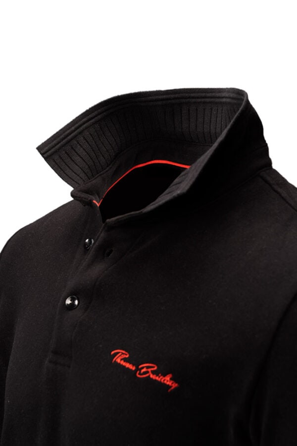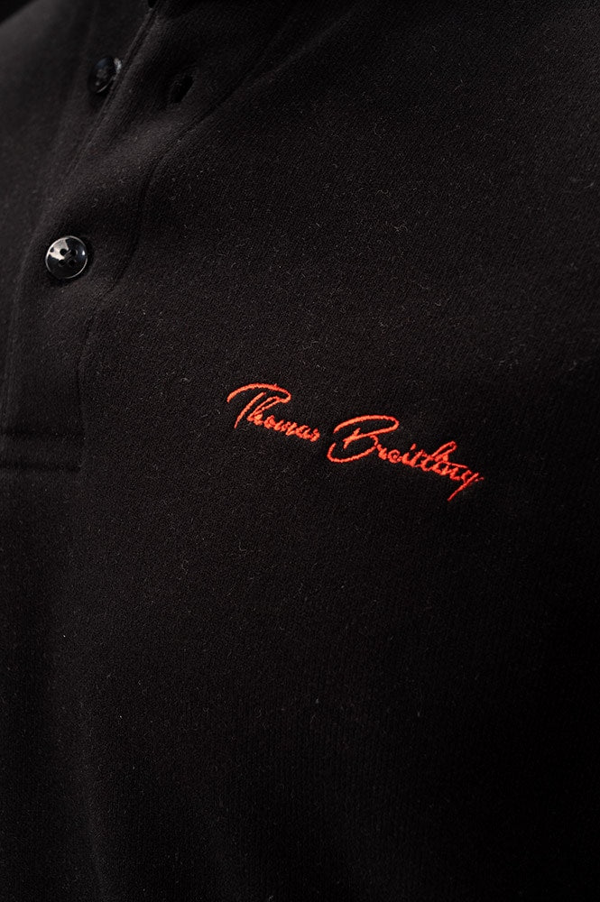 Men's collared sweater made from Selanik fabric. Features a three-button design at the ribbed collar, with a loose-fitting, straight hem at the waist and cuffs, giving the wearer a casual-elegant look. Embroidered with the Thomas Breitling brand logo on the chest. A truly special sweater, as Selanik is a uniquely soft knit fabric that distinguishes itself from similar materials through its fine texture and exceptional hygiene. A practical fabric, surprisingly dense despite its softness, yet shape-retaining. It fits the body very gently while remaining breathable and providing excellent thermoregulation. It has an aesthetically pleasing appearance, is elastic, low-creasing, and boasts excellent durability. Hygienic and hypoallergenic. It effectively absorbs and evaporates moisture. Further characteristics include comfort and a luxurious feel during wear.