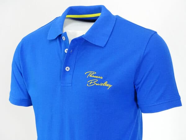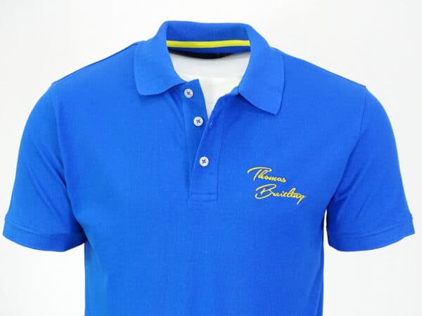 Men's short-sleeved polo shirt made from a basic, solid-color blended fabric, with a collar and pleasantly soft, high-quality cotton. A three-button tennis polo shirt with a matching collar and cuffs. Features an embroidered Thomas Breitling logo on the chest. The premium fabric composition consists of high-quality pique cotton threads, guaranteeing breathability. Extremely comfortable, ideal for everyday wear, and a versatile base for a casual-elegant style.