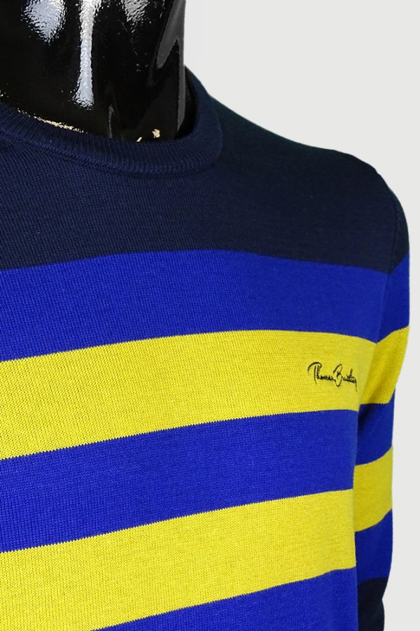 Thomas Breitling striped long-sleeved crew-neck fine-knit men's sweater with embroidered branding.
