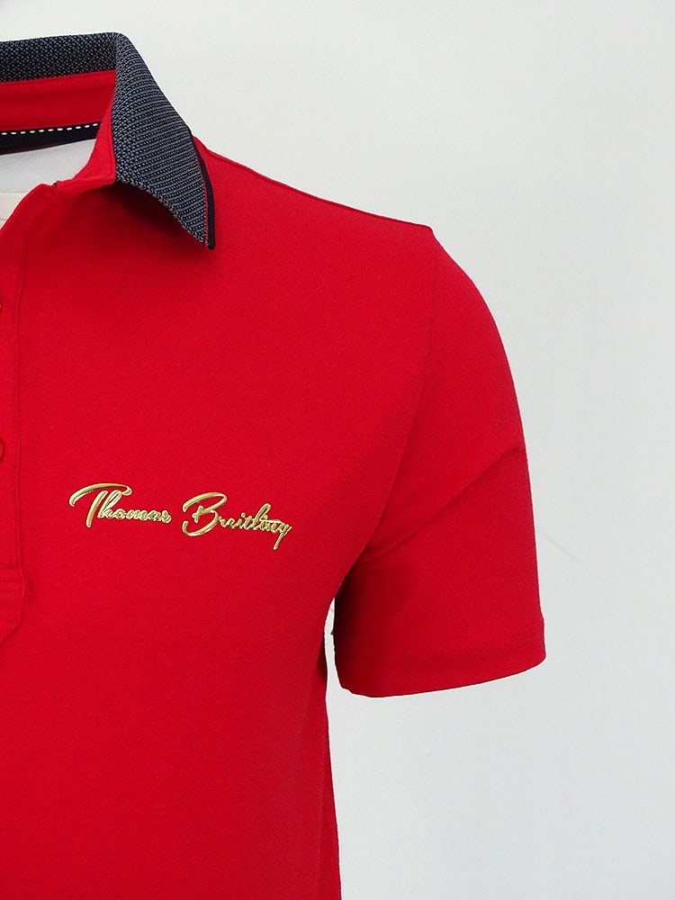 Solid-color men's polo shirt with a collar, made from a pleasantly soft, high-quality bamboo-elastane blend. Features a three-button design and patterned collar. A gold-colored 3D Thomas Breitling brand logo is featured on the chest. The premium material composition consists of high-quality fibers, and its thin fabric guarantees breathability. Extremely comfortable, ideal for everyday wear, and a versatile base for a relaxed-elegant style.