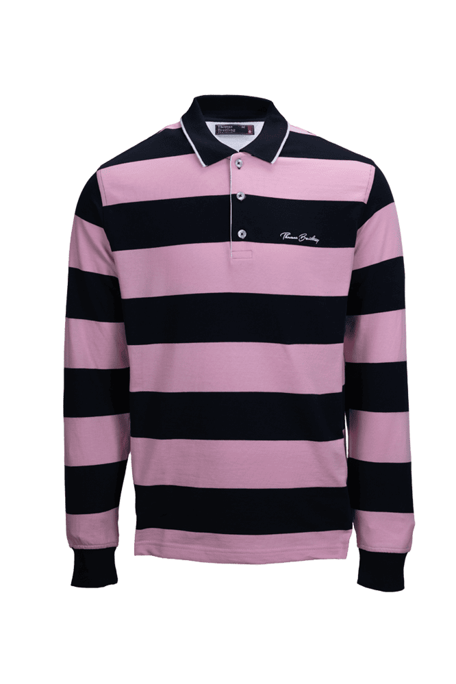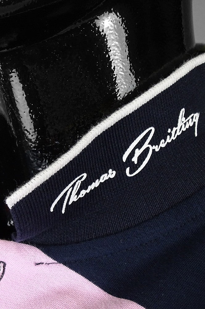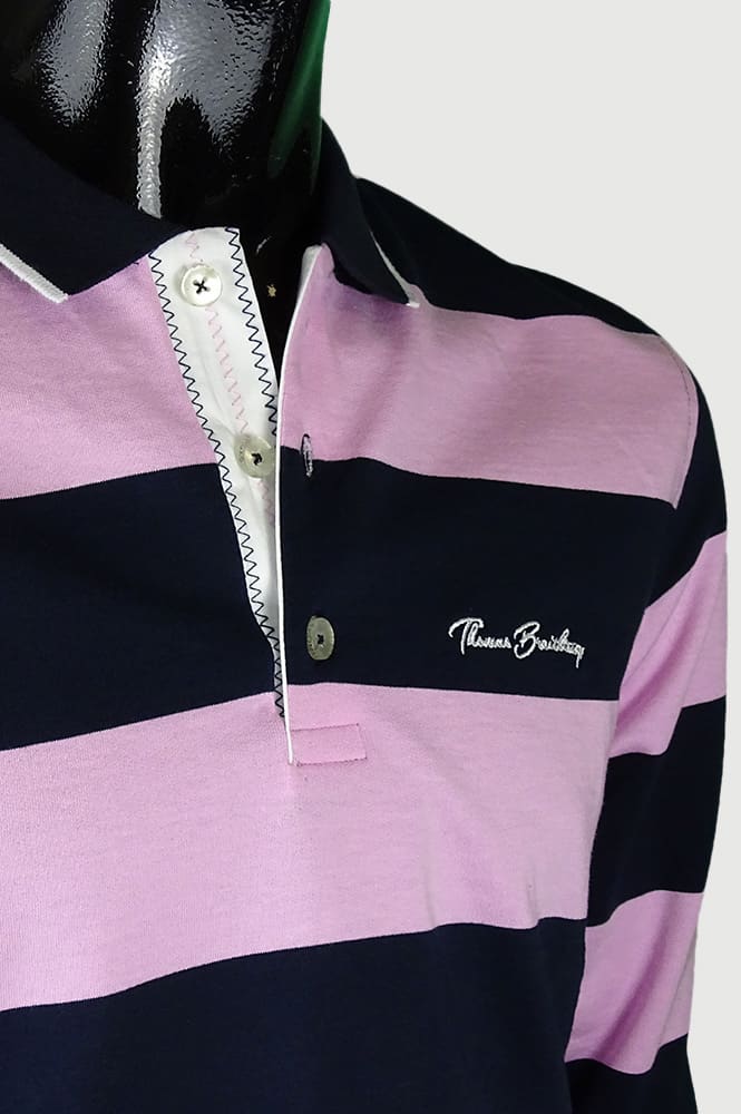 Thomas Breitling striped long-sleeved collared men's sweater with embroidered branding.