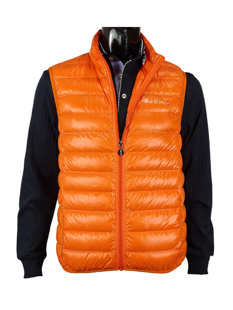 Men's lightweight quilted vest with a stand-up collar, perfect for autumn. Straight cut with a drawstring waist, full zip closure, and side pockets. The thin, lightweight duck down filling provides good wind protection. A relaxed piece for transitional weather, whose qualities you'll appreciate on mildly windy days.