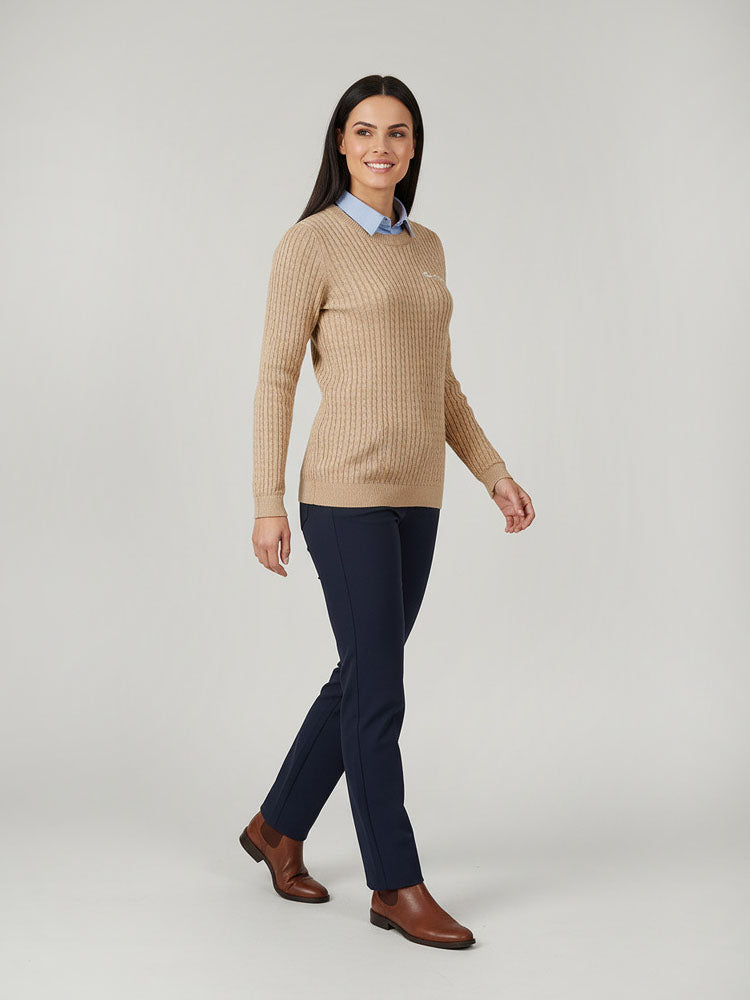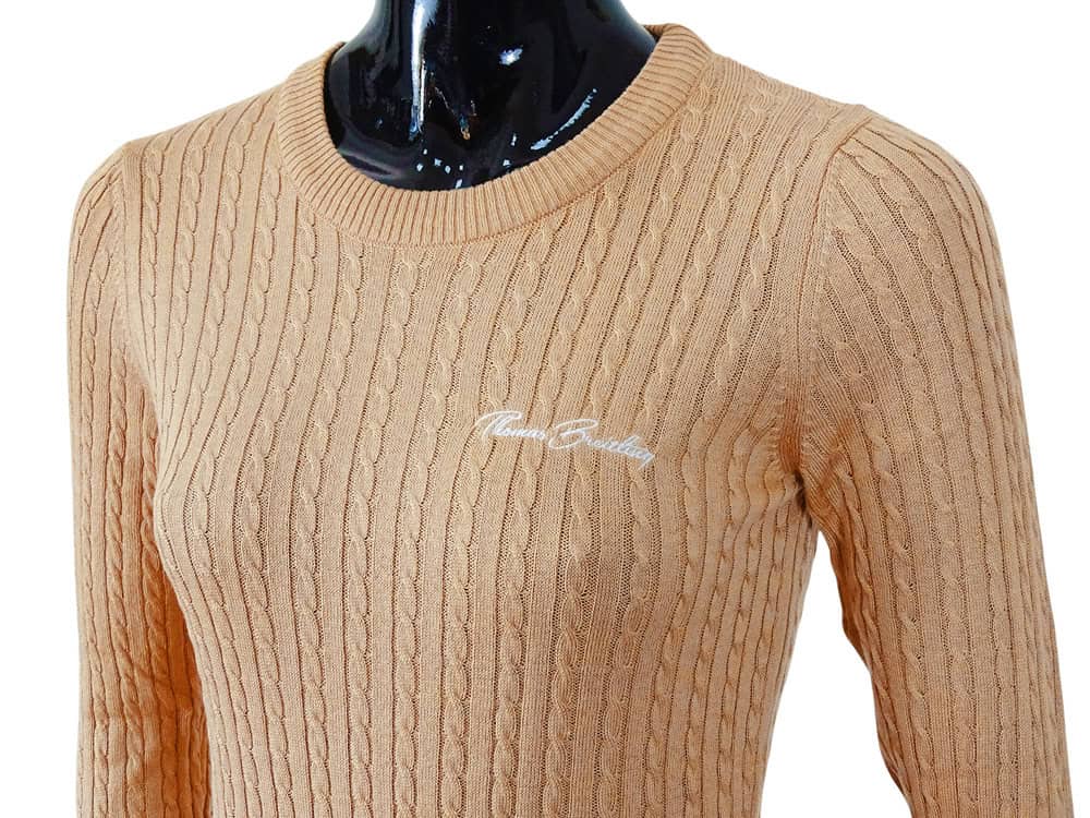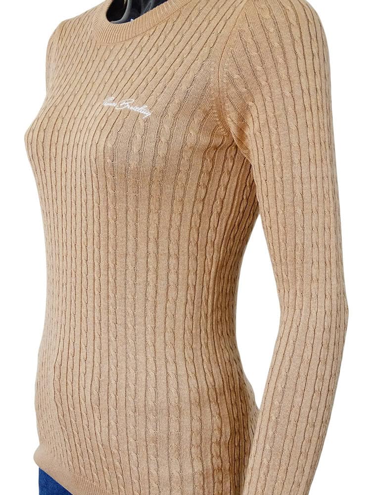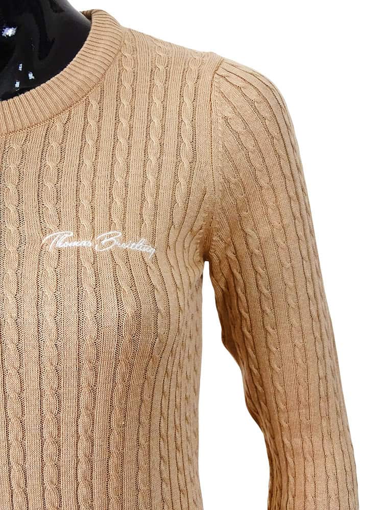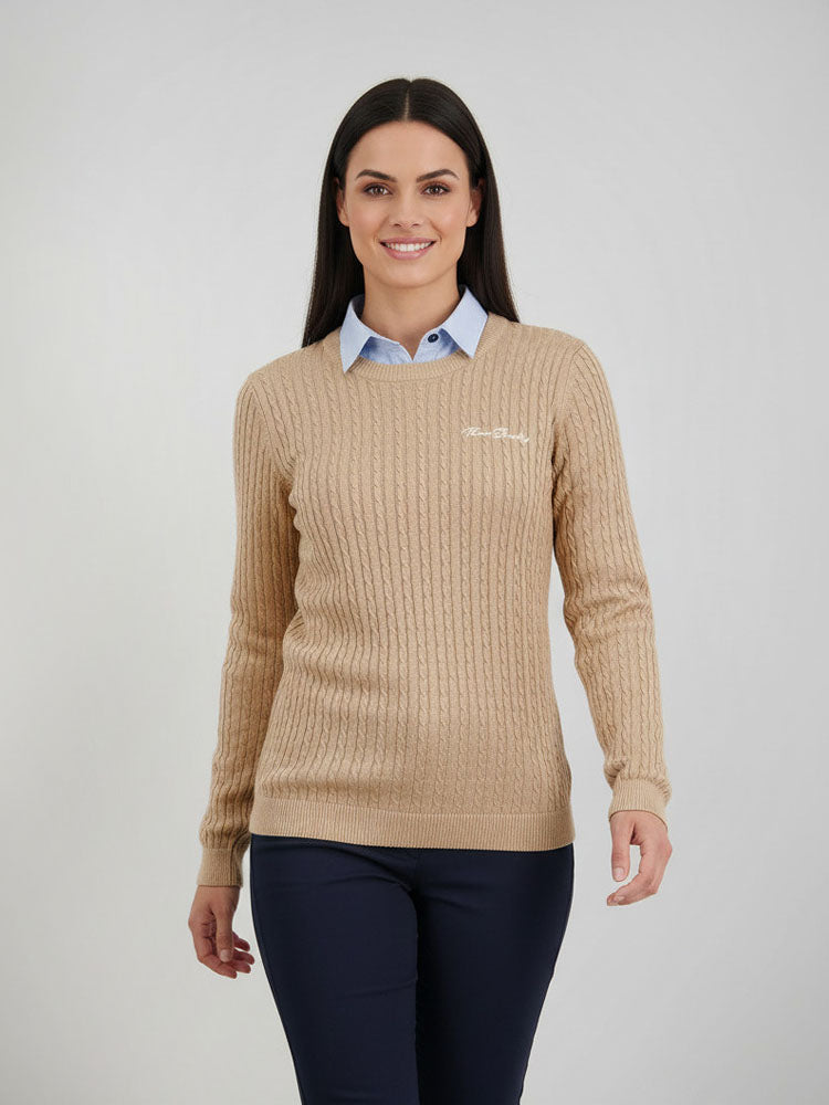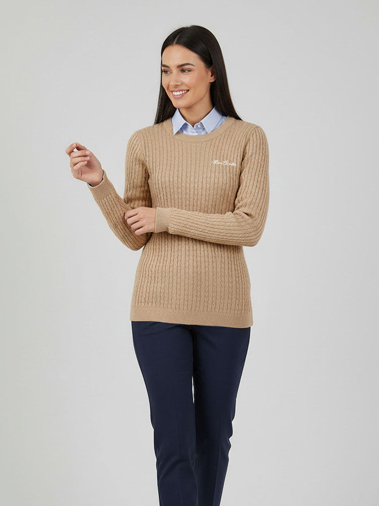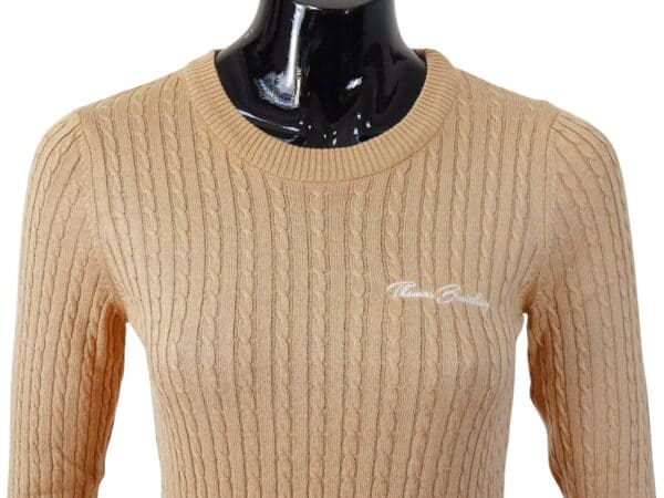 Women's long-sleeved, crew-neck, lightweight sweater made with a twisted knit pattern. Features ribbed trim at the neck and waist. Embroidered Thomas Breitling brand logo on the left chest. The velvety soft, durable, breathable fabric is made from high-quality yarns and is very pleasant to the touch, guaranteeing exceptional comfort. An exclusive fashion item that lends a relaxed-elegant look to the wearer. A simple and beautiful piece that will fit well into your wardrobe.