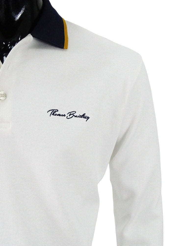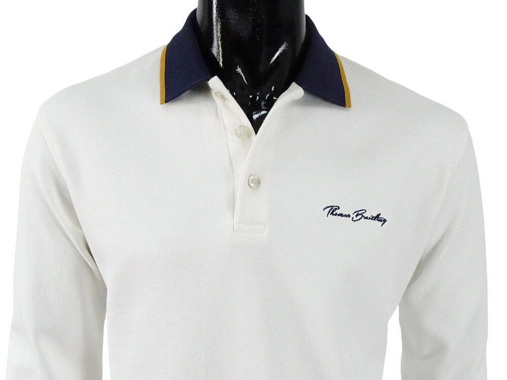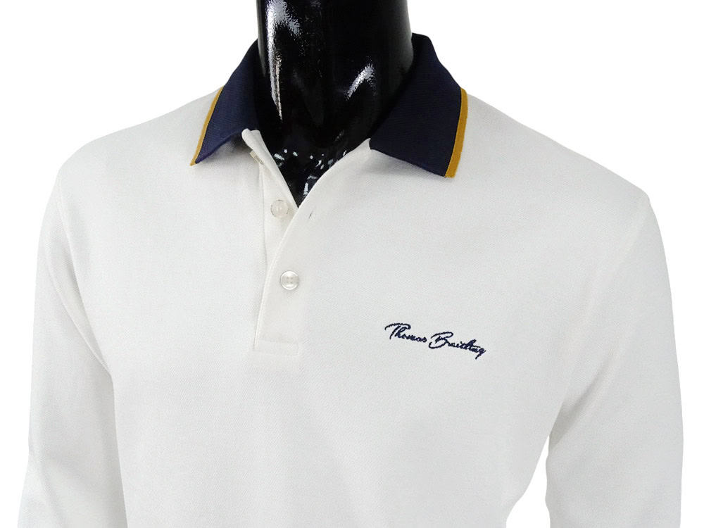 Men's long-sleeved polo shirt made from strong pique fabric, with a three-button closure under the collar. Classic look, straight waist and elasticated cuffs, embroidered Thomas Breitling lettering on the left chest. High-quality material ensuring comfort, with a porous texture guaranteeing unique breathability and absorbency. It has minimal wrinkling and is easy to care for, while maintaining its original shape and color for a long time. A versatile piece that perfectly complements any casual-elegant outfit.