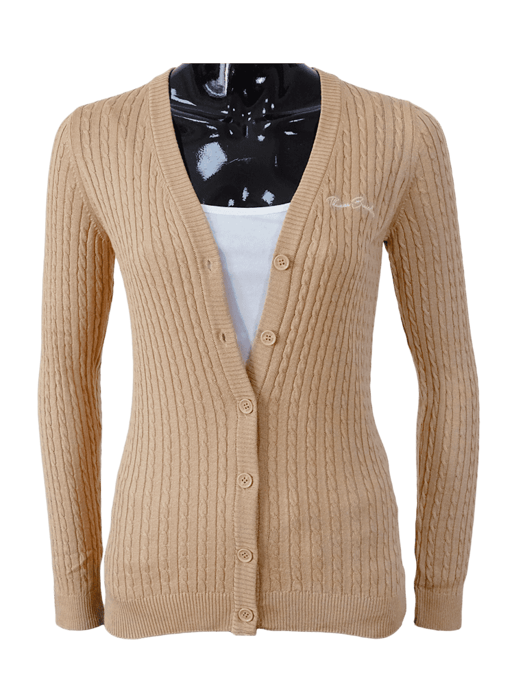 Long-sleeved, round-neck women's thin cardigan made with a twisted knit pattern. Features ribbed trim at the neck and waist. Embroidered Thomas Breitling brand logo on the left breast. The velvety soft, durable, breathable fabric is made from high-quality yarns and is very pleasant to the touch, guaranteeing exceptional comfort. An exclusive fashion item that lends a relaxed-elegant look to the wearer. A simple and beautiful piece that will fit well into your wardrobe.